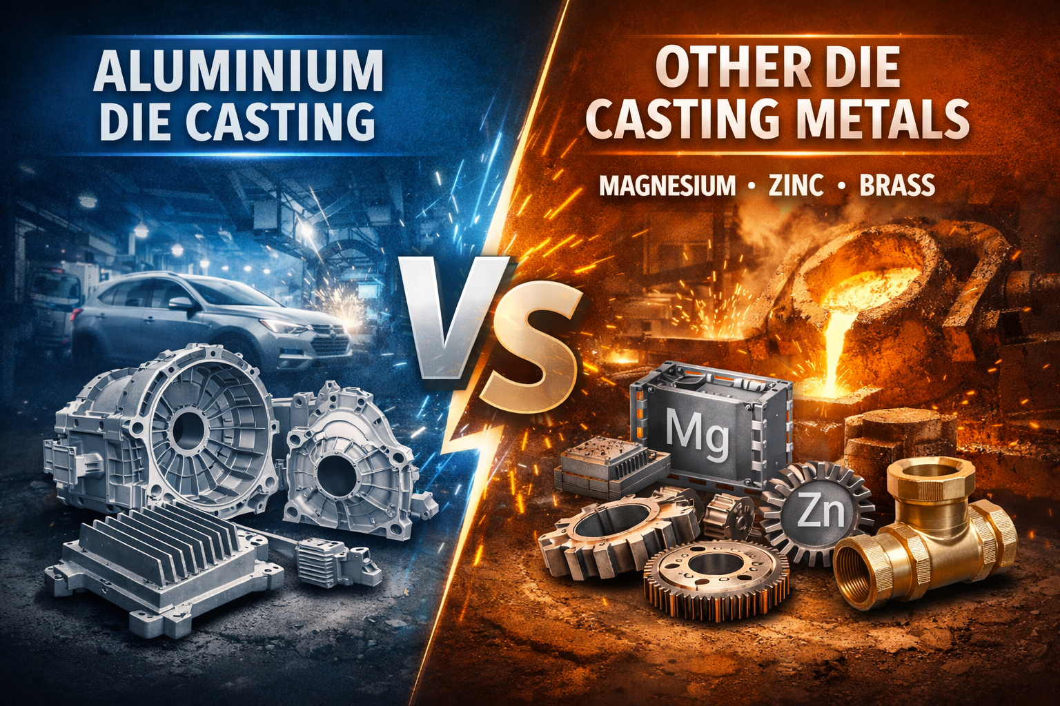 A technical comparison of aluminium, magnesium, zinc, and brass die casting covering material properties, cost, quality, applications, and when to choose each metal.