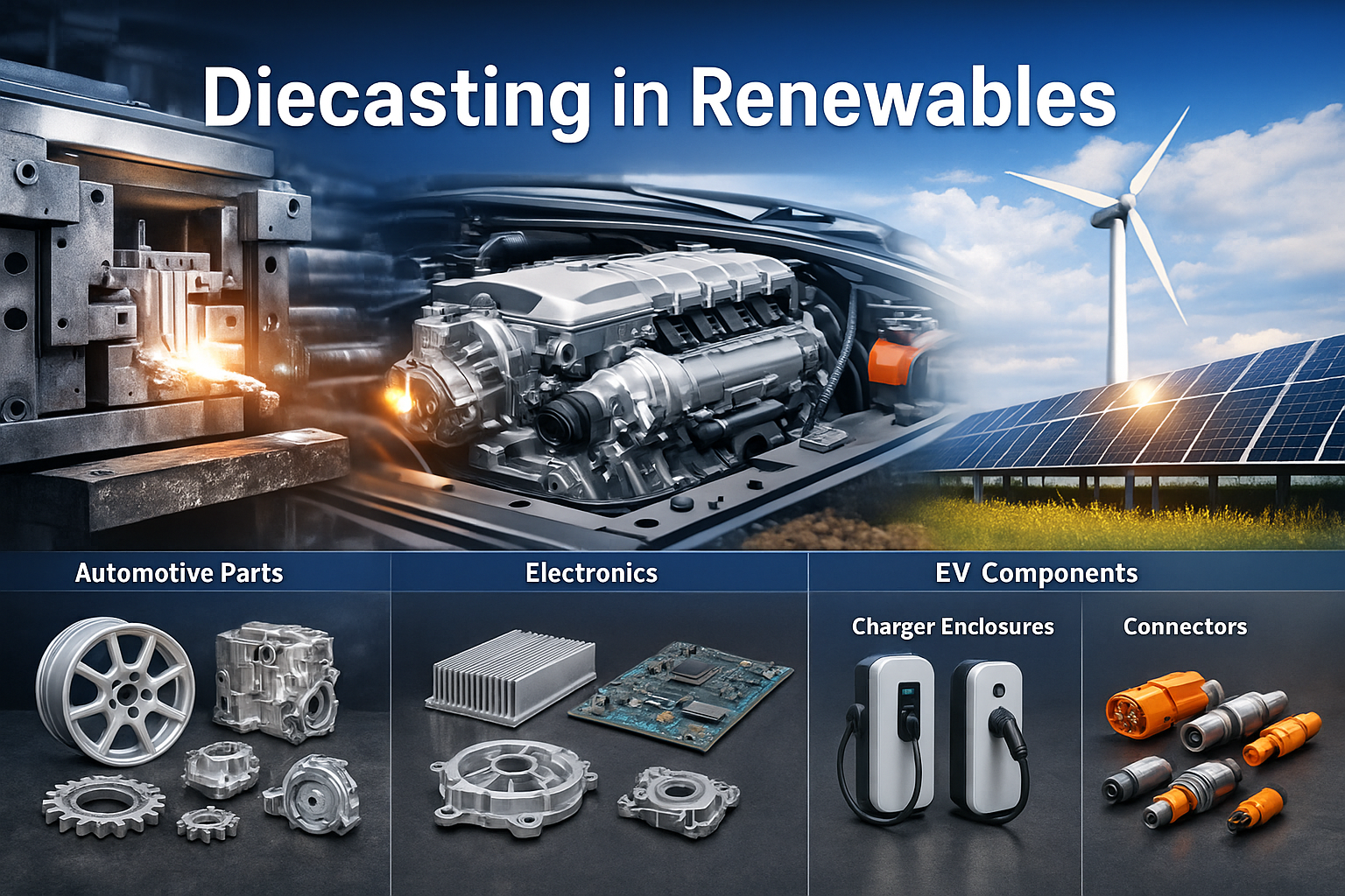 Discover how aluminium die casting powers modern renewable energy systems—from solar inverters and wind turbines to EV charging stations and battery energy storage systems (BESS).
